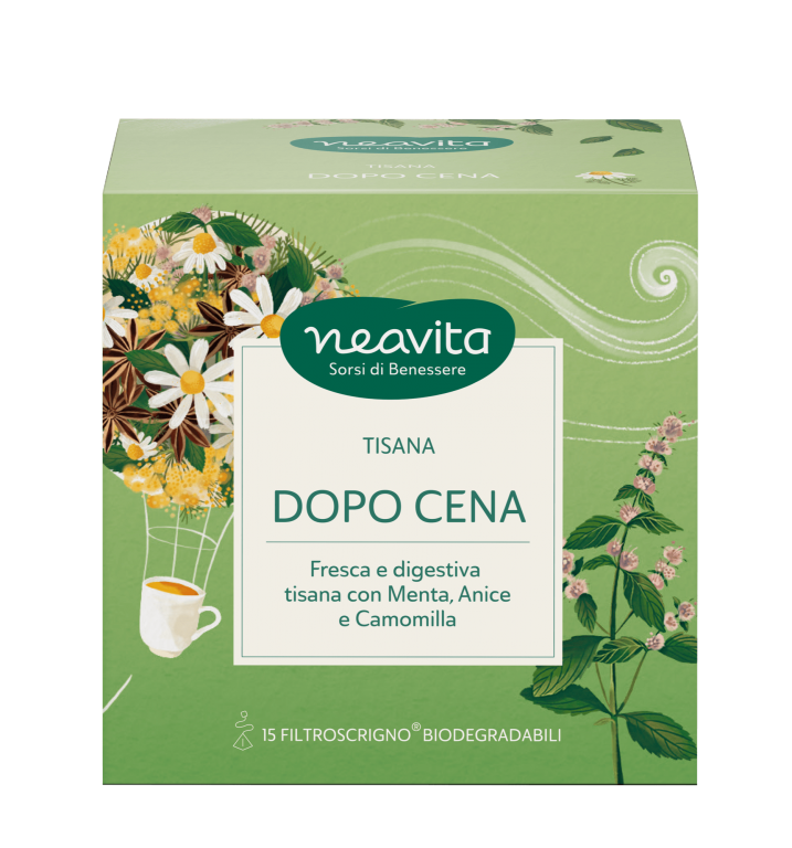Questa tisana tonifica la digestione con la nota fresca e squillante della menta, la scalda con quella dolce e premurosa della camomilla. Questa miscela, che ha una corposa fragranza di anice e finocchio, chiude il rituale del pasto e ne restituisce il piacere sano e appagante.