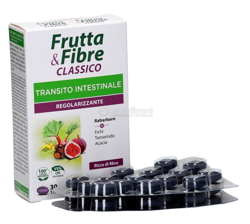 Estratto secco di radici di rabarbaro (Rheum palmatum L./Rheum officinale Baill. – 496 mg/comp.); agente di carica: cellulosa microcristallina; polvere di succo concentrato di fichi (Ficus carica L. – 80 mg/comp.); estratto secco di polpa di tamarindo (Tamarindus indica L. – 50 mg /comp.); fibre d’acacia (Acacia senegal L. - 50 mg/comp.); agente di rivestimento: hydroxypropylméthylcellulosa, hydroxypropylcellulosa; colorante: antociani; antiagglomeranti: talco, stearato di magnesio. |