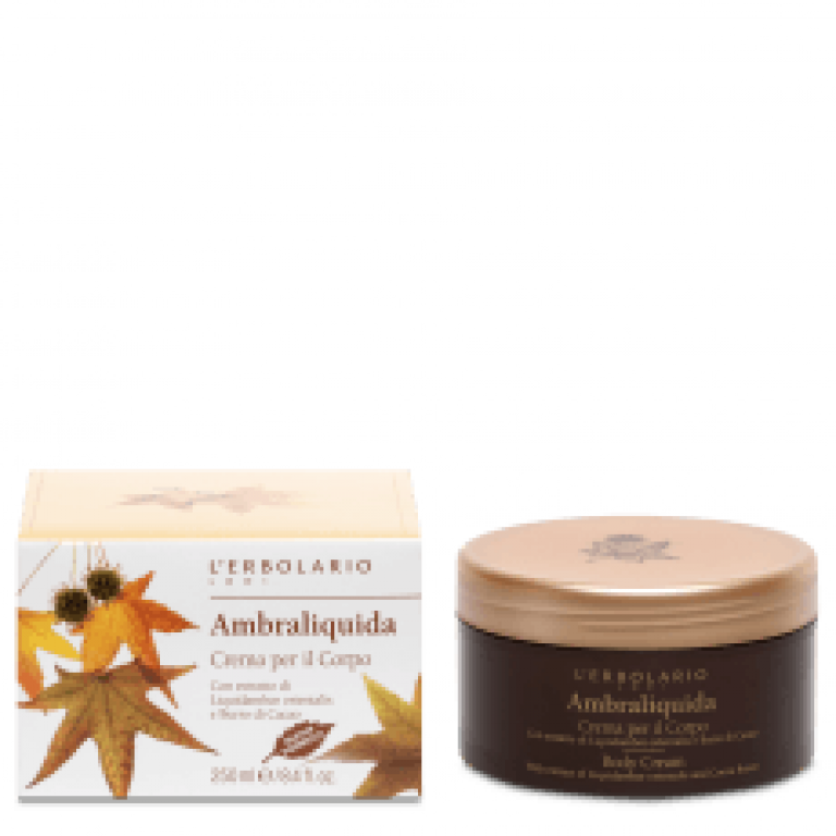 È in una riparata foresta di Liquidambar orientalis che il vento delle coste, il Meltem irriverente sveglia con il suo soffio tiepido le ì foglie rosse e oro al suolo addormentate: al loro aroma secco esso va a fondere inattesi aliti di miele e spezie, rubati al lontano suk. Nasce così il profumo Ambraliquida, fragranza suadente che investe di tutta la sua aura bizantina questa Crema per il Corpo, in cui figurano i colorati doni della terra vasta di Turchia. Accanto agli emollienti burri di Pistacchio e di Cacao, troviamo infatti l’oro giallo dei nutrienti oli di Pistacchio e Sesamo e gli estratti di Liquidambar orientalis che partecipano, con la loro sfumatura rosso ambrata, proteggono e tonificano l’epidermide di tutto il corpo.