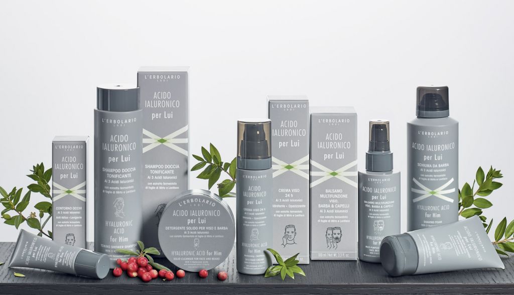 Acido Ialuronico a basso, medio e alto peso molecolare, estratto fermentato di foglie di Mirto e Lentisco, estratto di Lentisco, olio di Argan tensioattivato, estratto di Portulaca, estratti biologici di Zenzero, Avena ed Elicriso.