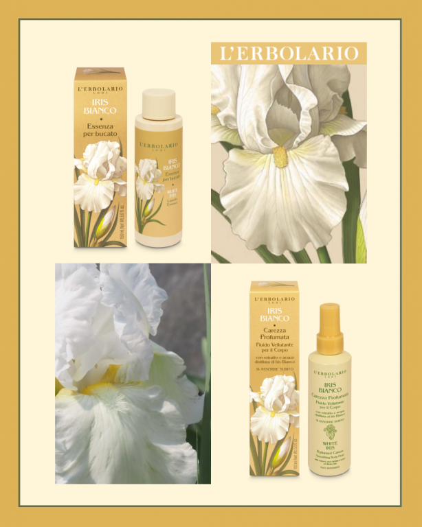 Delicato e al tempo stesso intenso, avvolge la persona in una nuvola fragrante e raffinata come candidi petali di Iris Bianco. L’accenno iniziale di agrumi si apre su un cuore intenso e fiorito per schiudersi sulle note vanigliate e lievemente stuzzicanti.