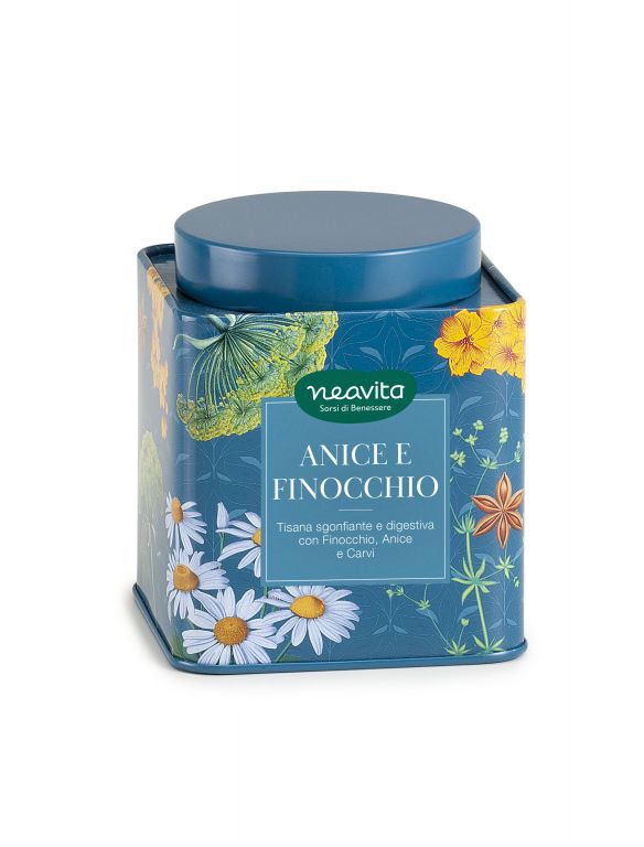 Tisana sgonfiante e digestiva con finocchio, anice e carvi.