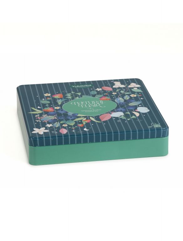 Infuso Fragole e Ibisco: pezzi di mela**, bacche di rosa canina**, fiori di ibisco**, foglie di rovo**, roglie di verbena odorosa**, aromi naturali di fragola, mirtillo e ribes nero, granulato di fragola**.