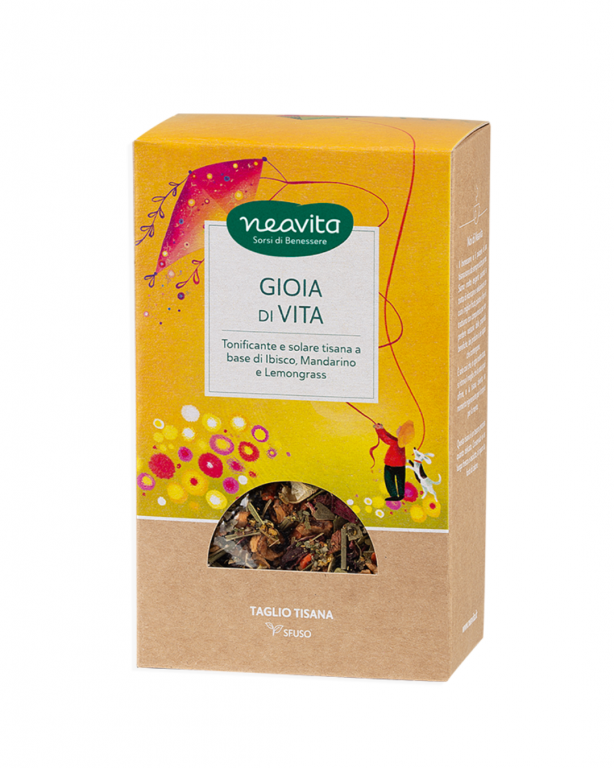 Cedi al fascino di una pausa luminosa: la tisana “Gioia di Vita” di Neavita è un invito al buonumore e alla vitalità in ogni sorso. Immagina la fresca dolcezza del mandarino, la vitalità del lemongrass e la leggerezza delicata dei fiori di ibisco: tutti ingredienti che si combinano in un mix armonioso, perfetto per risollevare le giornate più grigie con un sorso di sole.