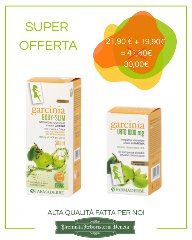 Ingredienti funzionali in 2 cpr: Garcinia frutto e.s. 2000 mg tit. 60% Acido idrossicitrico.