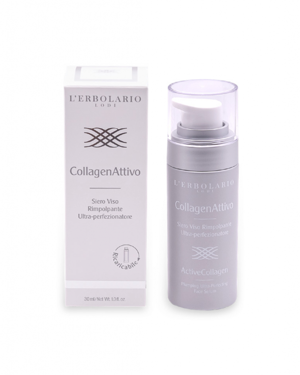 Siero Viso con Collagene per pelli non più giovani o mature, antiage, rimpolpante e ultra-perfezionatore arricchito con un potente concentrato di ingredienti attivi rivitalizzanti, come il Collagene biomimetico, l'Acido Ialuronico 3D, la Vitamina C e la Niacinamide. Il Siero CollagenAttivo rimpolpa e compatta, offre un effetto lifting, stimola la produzione di Collagene ed Elastina, leviga la pelle, uniforma l’incarnato, riduce la visibilità dei pori e le rughe del viso. La texture di questo Siero Viso si fonde perfettamente con la pelle, migliorandone l’aspetto globale.