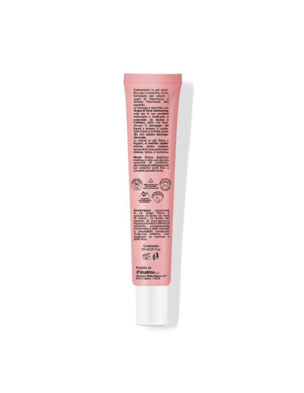 La formula è arricchita con Acqua di Rosa Damascena, nota per le sue proprietà rinfrescanti e tonificanti, e potenziata da Escina e Caffeina, attivi che favoriscono il drenaggio dei liquidi e aiutano a contrastare borse e occhiaie grazie alla loro azione decongestionante.